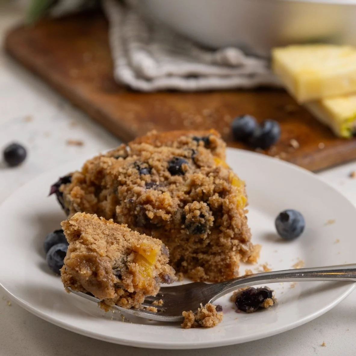 Combine pineapple tidbits and a handful of fresh or frozen blueberries for a bright, fruity combo. Layer over the batter, add the crumb topping, and bake to golden perfection.